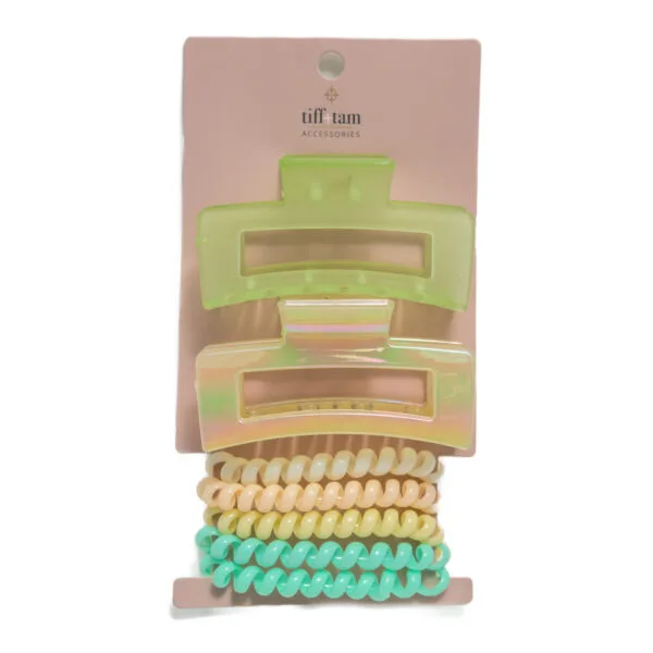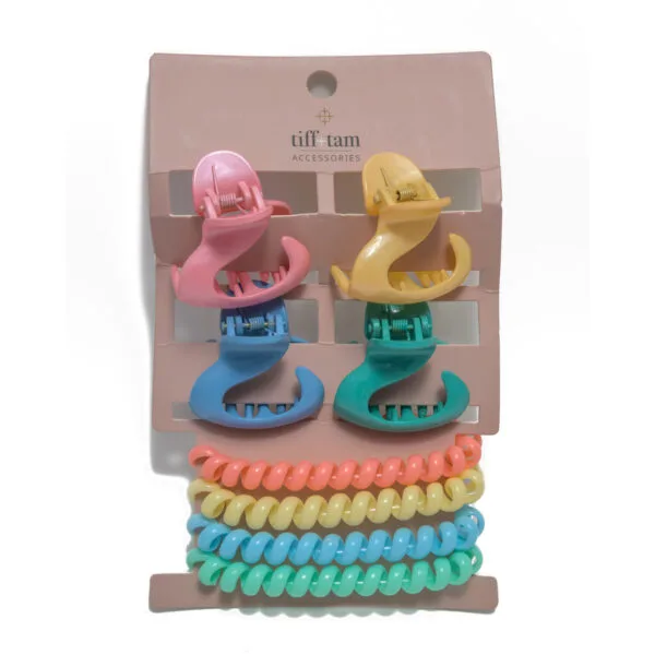 tiff+tam Designer Jaw Clip & Pony O Set: Mini Pastel Loop w/ Telecord