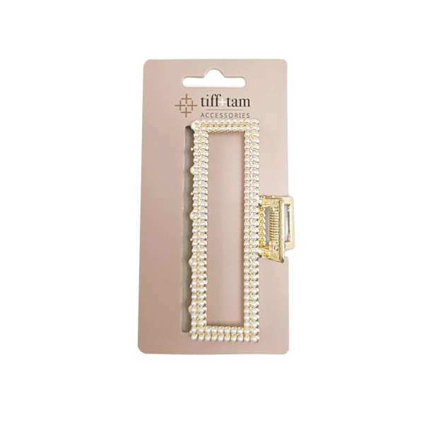 tiff+tam Deluxe Metal w/ Stones Jaw Clip: Rectangle Mini Pearl