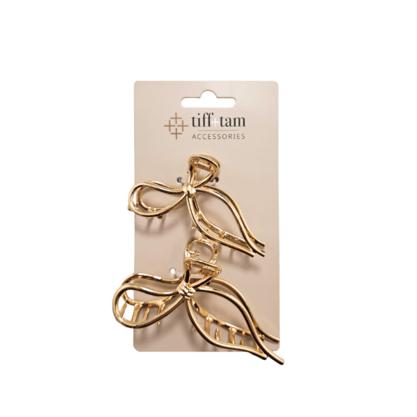 tiff+tam Metal Jaw Clip: Gold Bow Set