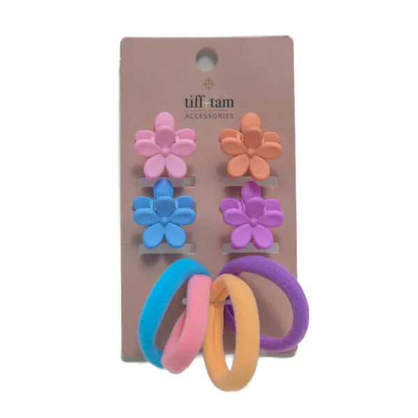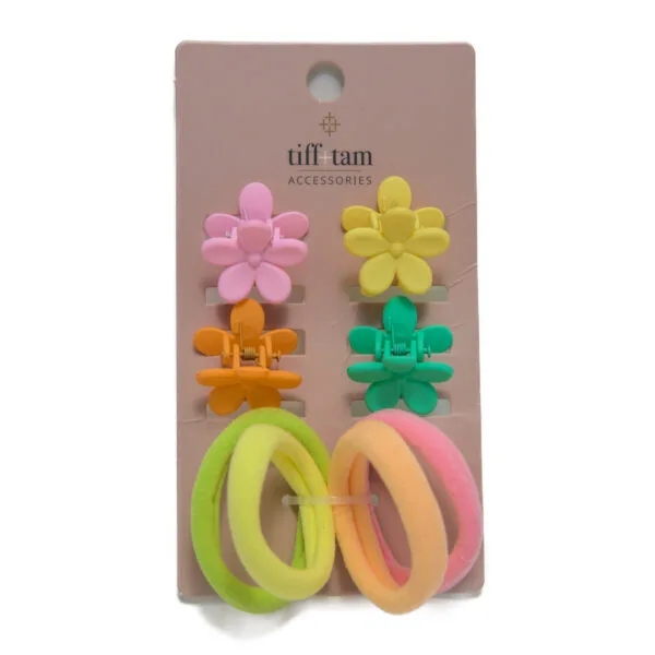 tiff+tam Mini Jaw Clip & Pony O Set: Mini Flowers Bright