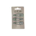 - Barrettes & Snap Clips (Gray snap clips, blush-tone hair pins)