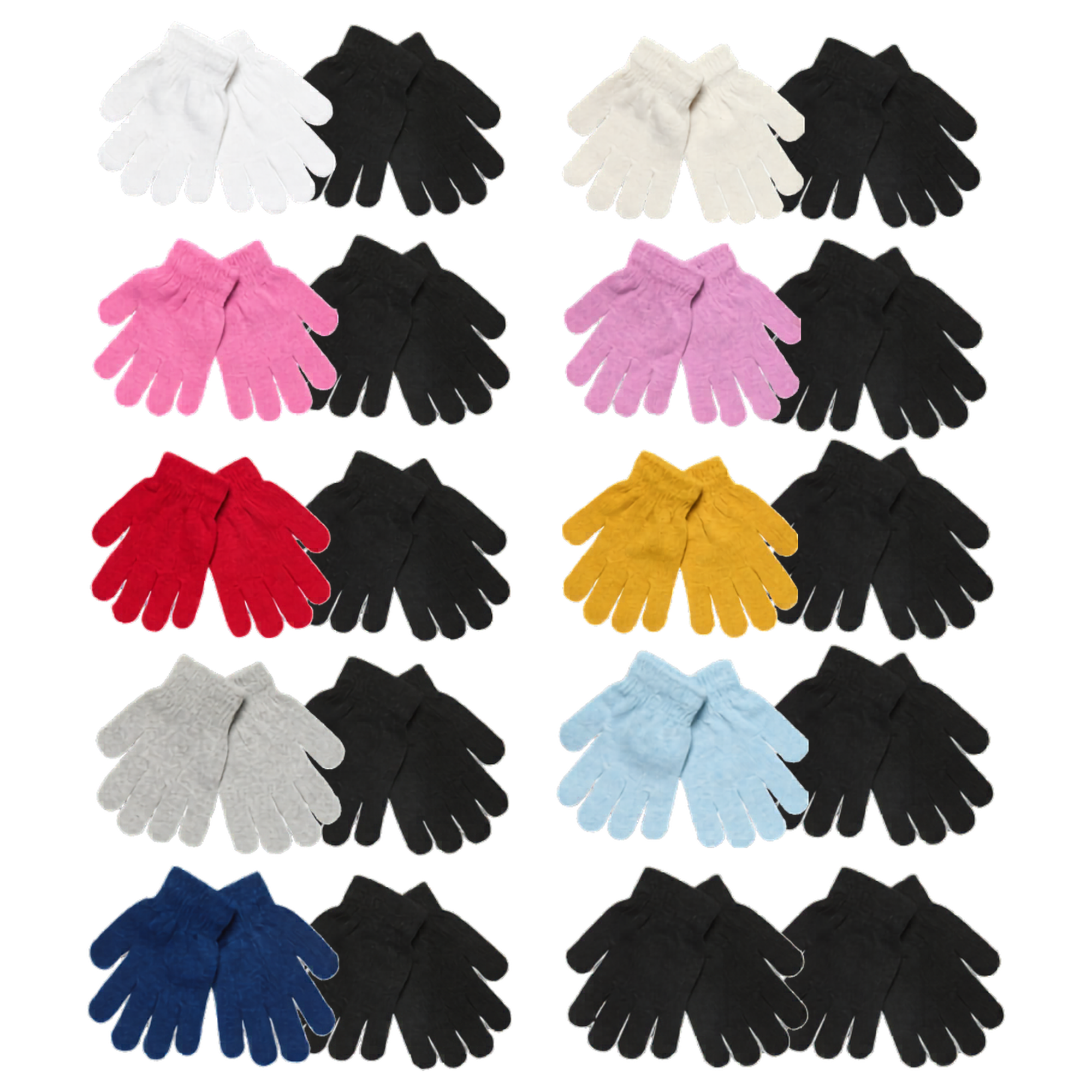 These children’s knit gloves offer a soft, stretch fit for comfortable warmth during cooler weather. Designed for everyday wear, they provide a flexible feel that allows for easy movement while keeping hands cozy. Each set includes two pairs, one solid color and one classic black, making them a versatile option for mixing, matching, and keeping an extra pair on hand. Available in a variety of kid-friendly colors. Available in assorted dozens of 2-pack sets.
