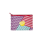 This cosmetic bag features a structured design with bold, mixed patterns and a playful fruit accent for a fun, eye-catching look. The fully lined interior and zip closure provide secure storage for beauty essentials, travel items, or small accessories. Compact and easy to carry, this pouch is perfect for everyday organization with a pop of personality. Sold individually in assorted dozens.
