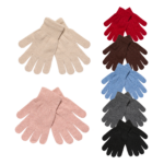 These ladies’ knit gloves offer a soft, stretch-knit feel with a comfortable, flexible fit for everyday cold-weather wear. Designed in a variety of classic solid colors, they provide lightweight warmth while easily pairing with any winter outfit. Perfect for daily wear and seasonal use. Available in assorted dozens.
