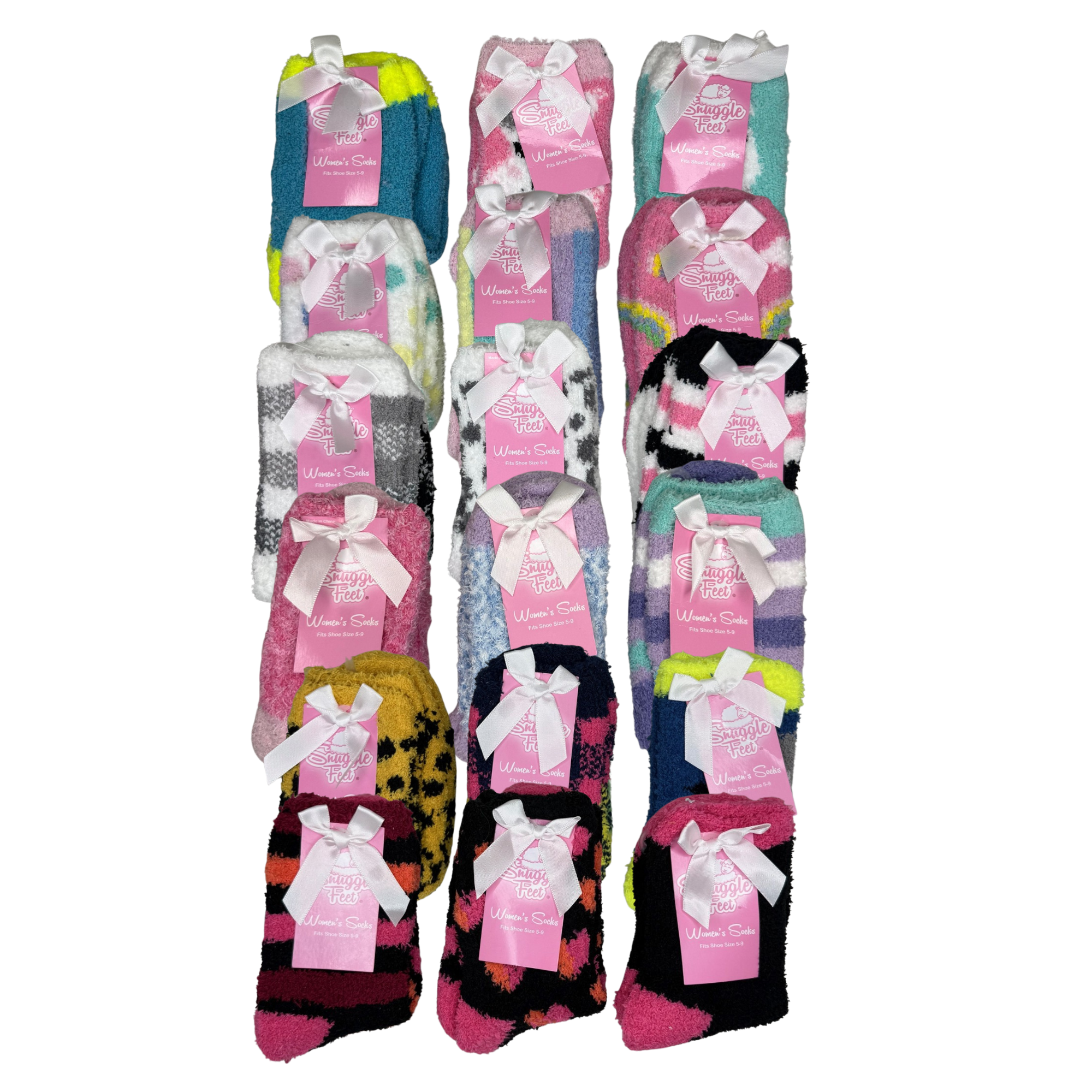 Women’s snuggle socks offer an ultra-soft, plush feel with a cozy, cushioned fit for everyday comfort. Designed with a fuzzy knit texture and a variety of colorful patterns, they provide warmth while adding a fun, giftable touch. Comfortable and easy to wear, they are perfect for lounging at home or staying warm on colder days. Available in assorted dozens.