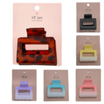 This assortment includes a dozen hair claw clips designed in a smaller square silhouette with a modern cutout center for a clean, structured look and secure hold. Compact and lightweight, this style is ideal for shorter styles or finer hair while offering comfortable, everyday wear.