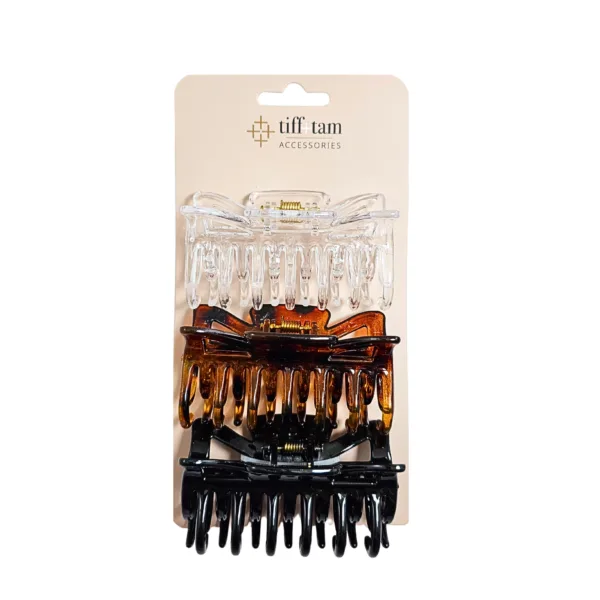 This 3-piece jaw clip set from tiff+tam Accessories features coordinating clips in a gorgeous sage color palette, offering a mix of shapes for versatile everyday styling. Designed with durable spring hinges for a secure hold, these claw clips are perfect for quick updos, half-up styles, and effortless hair looks.