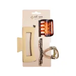 This 3-piece jaw clip set from tiff+tam Accessories features coordinating clips in a beige palette, offering a mix of shapes for versatile everyday styling. Designed with durable spring hinges for a secure hold, these claw clips are perfect for quick updos, half-up styles, and effortless hair looks.