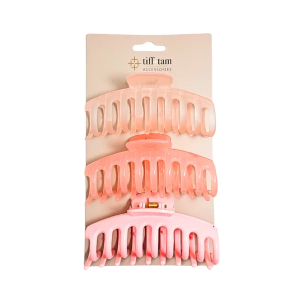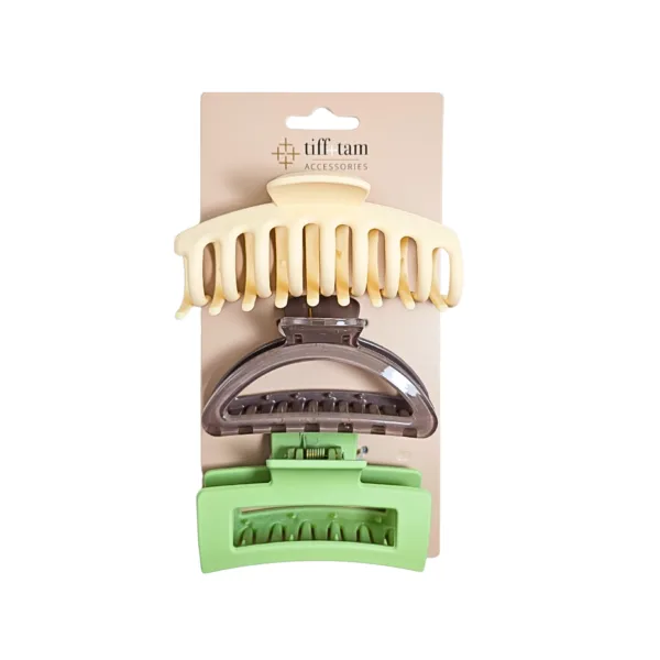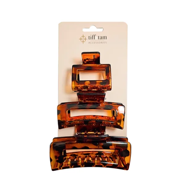 This 3-piece claw clip set from tiff+tam Accessories features playful designs in a brown palette, including unique shapes that add a fun touch to everyday hairstyles. Lightweight yet durable, these clips provide a secure hold for quick updos, half-up styles, and effortless styling.
