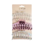 This 3-piece jaw clip set from tiff+tam Accessories features coordinating clips in clear and metallic pink finishes for a modern, eye-catching look. Designed with durable spring hinges for a secure hold, these lightweight claw clips are perfect for quick updos, half-up styles, and effortless everyday styling.