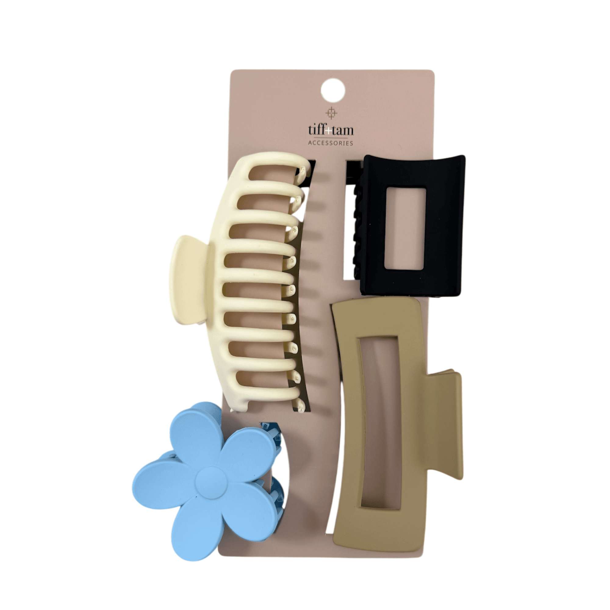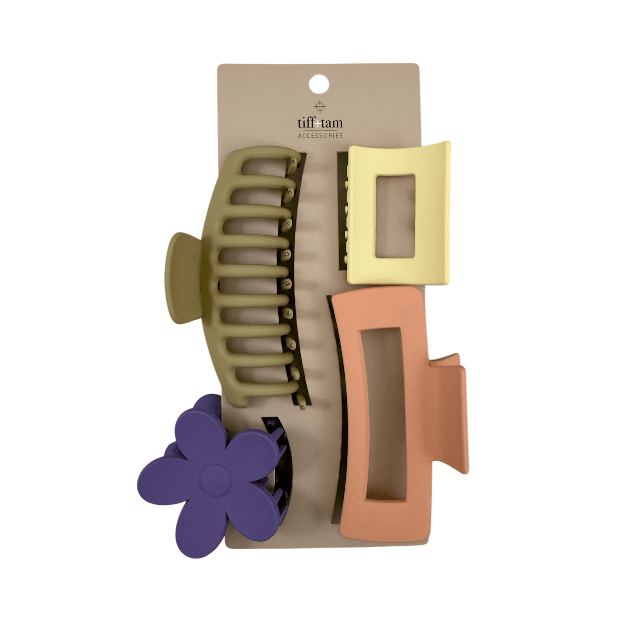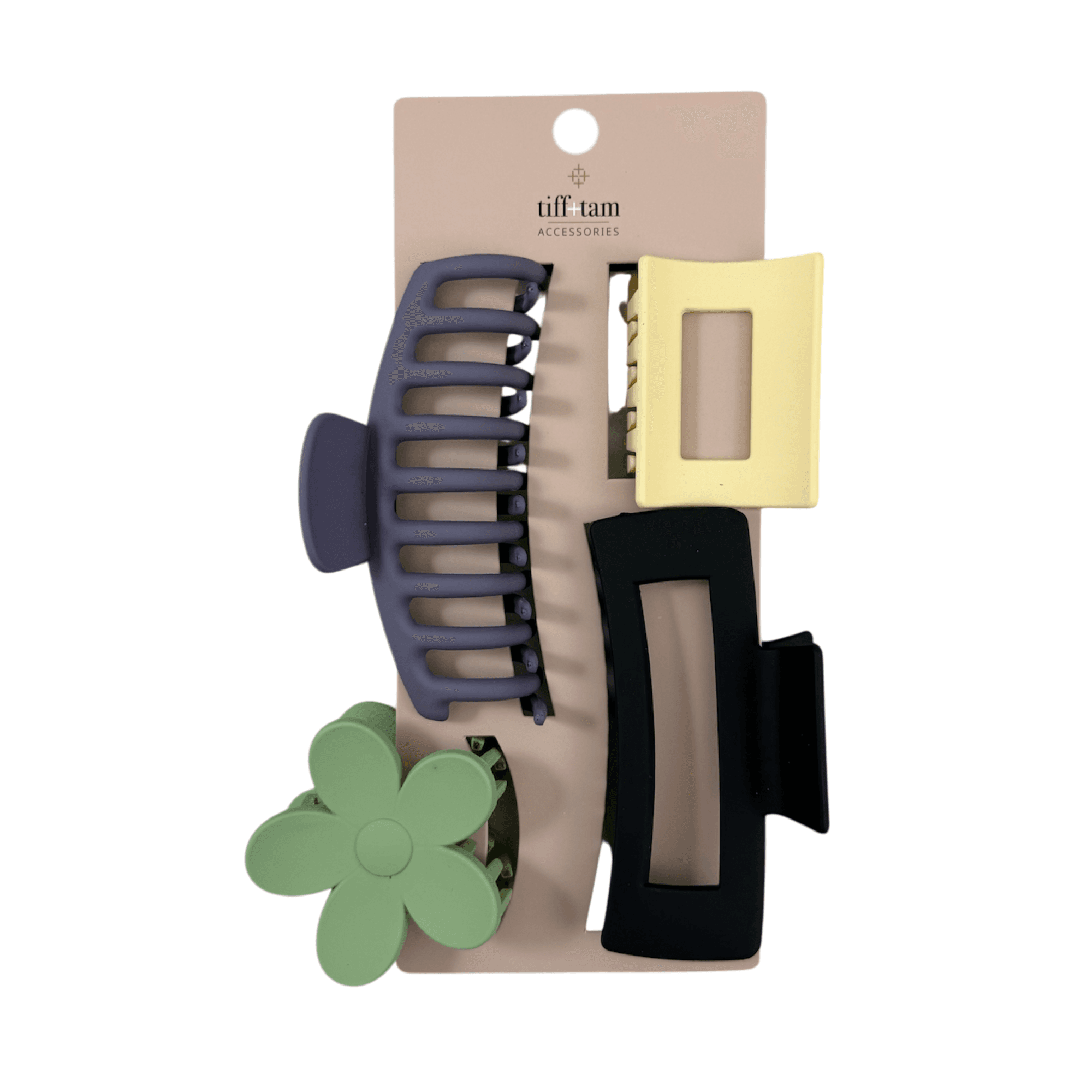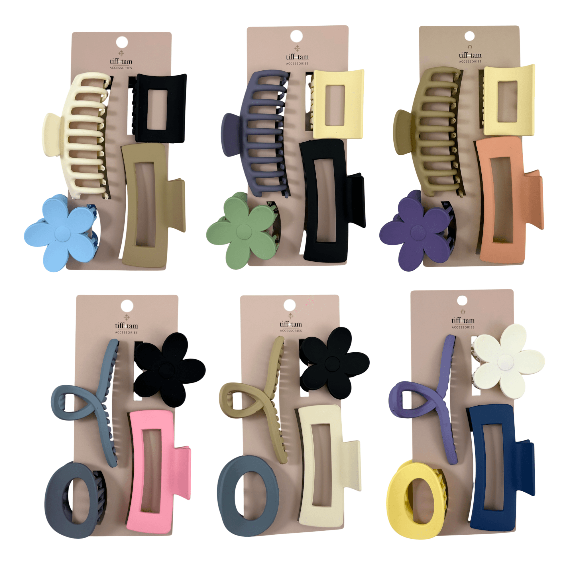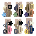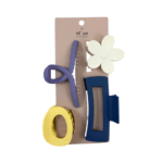 This set includes assorted jaw clips in a variety of shapes and colors. Designed for everyday styling, these clips provide a secure, comfortable hold while adding a fun, playful touch to any look.