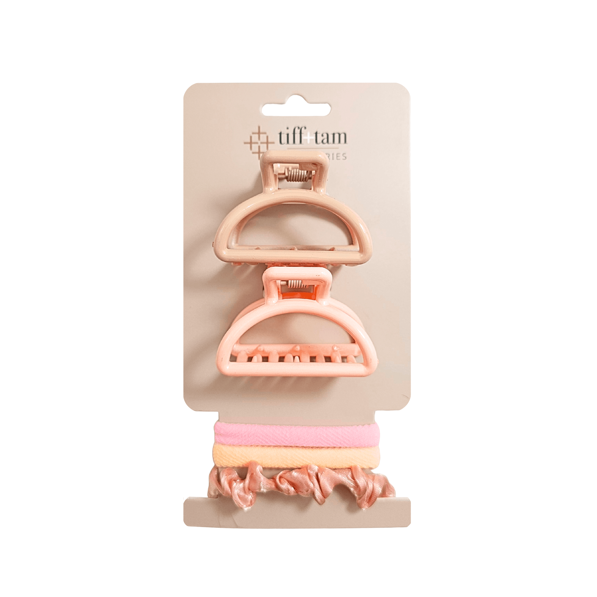 tiff+tam Jaw Clip & Pony O Set: Crescent Coral