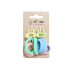 This hair accessory set from tiff+tam Accessories includes mini jaw clips paired with soft pony O hair ties in coordinating pastel tones. Designed for everyday styling, these lightweight clips and gentle elastics are perfect for securing small sections, quick ponytails, or effortless half-up styles.