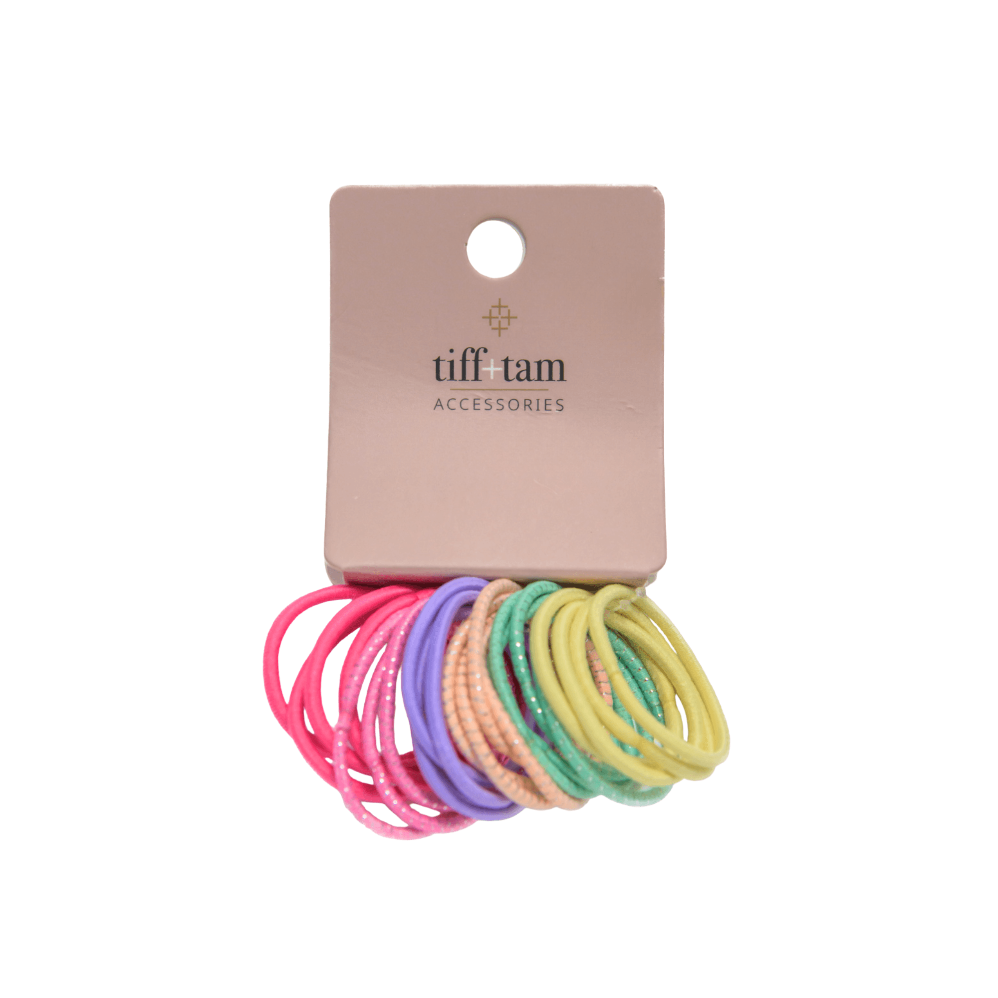 This set includes mini elastic hair ties in a bright assortment with a sparkle detail. Designed in a smaller size for lightweight styling, these elastics provide a secure, comfortable hold for finer hair, kids’ styles, or detailed looks.