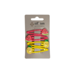 Snap Barrettes & Hair Clips – A variety of bright snap clips, including solid colors, fruit prints, and whimsical shapes like stars and hearts.