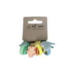 From soft tiff+tam ‘Pony O’ style ponytail holders to mini jaw clips and snap barrettes in delightful shapes and patterns, this assortment delivers both practicality and personality in every piece.